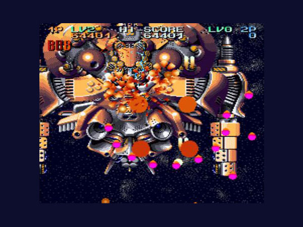 《炮钉》是一个非常容易让玩家中弹的游戏,这个游戏完美的延续了雷龙系列的游戏感觉,这个游戏里玩家需要在子弹群中进行穿梭。喜欢雷龙游戏的朋友可以来玩玩。想活得久一点的话,不要在子弹群中微动,最好是大范围的躲避。习惯了彩京系列的玩家,肯定不能认同。 但是萝卜是萝卜的味,青菜是青菜的味,喜欢雷龙风格的玩家也不少哦。