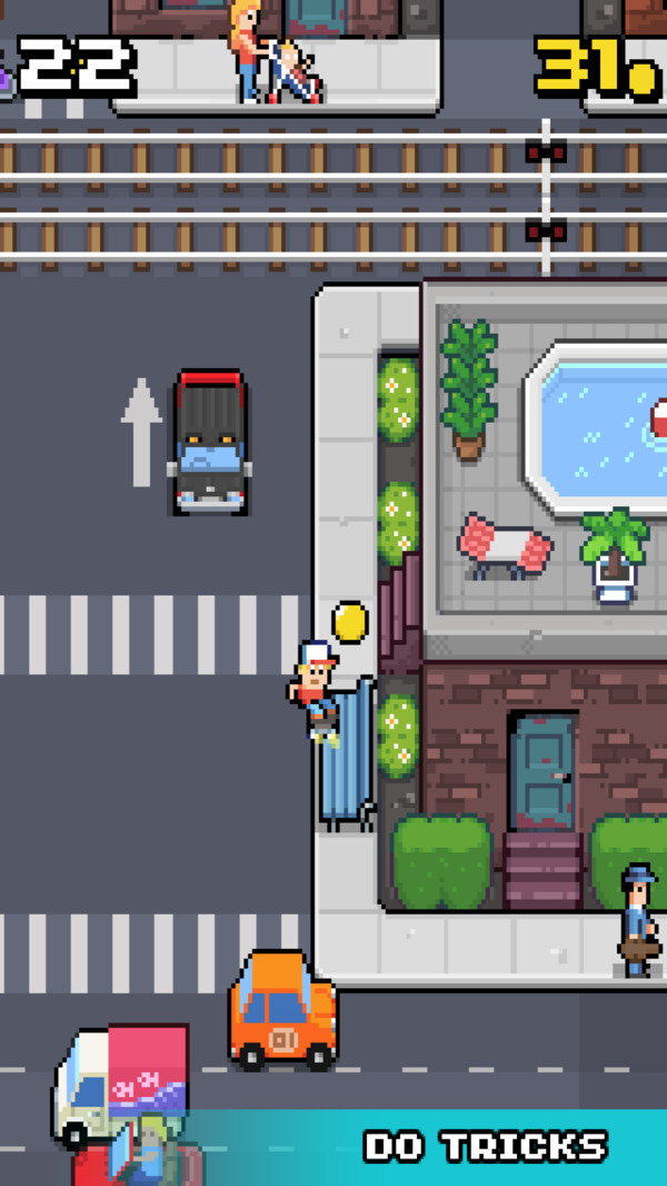游戏中玩家可以引导你的小选手在公园长椅,栏杆,台阶等地方练习技巧。在这里,你可以随心所欲的升级你的滑板,你可以展现各种高难度动作,你可以尽你所能的跑到最快。当然还是要躲避城市里各种隐藏的危险,多多的收集金币,努力完成各种成就。