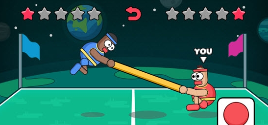 3、点击按钮开始游戏。你所要做的就是用各种可能的方法把对手拉过中线。