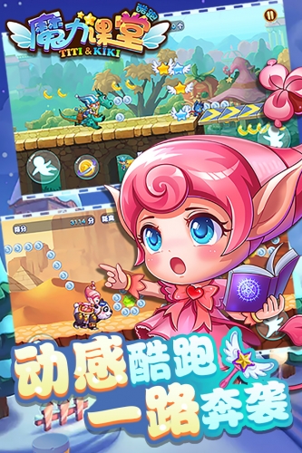 《魔力课堂酷跑》是由北京非同乾坤文化传播股份有限公司研发的经典动画片《魔力课堂》授权改编而成的手机游戏。游戏讲述了在一个奇幻魔法世界的发生的故事。魔法学院的一群小精灵守护着荣耀城里的居民们。破坏之王毛斯在偷取魔法学院的荣耀星时,被守护荣耀星的精灵们发现,一场追逐大战后,荣耀星散落在魔法学院周围的各个角落,为了找到荣耀星,守护魔法学院的安宁,魔法学院的精灵们与破坏之王毛斯之间进行了一场保护与破坏的战斗。