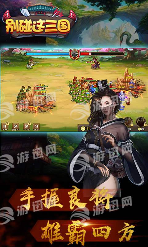 《别碰这三国》是一款策略型三国类手游,完美结合三国题材背景,千军万马同屏作战厮杀;真实的战场,有兵有将有城池!调遣军队攻城掠地,指挥武将释放技能!实时对战竞技,主公大人不再寂寞!三国乱象,群雄逐鹿,君临天下,只待今朝!