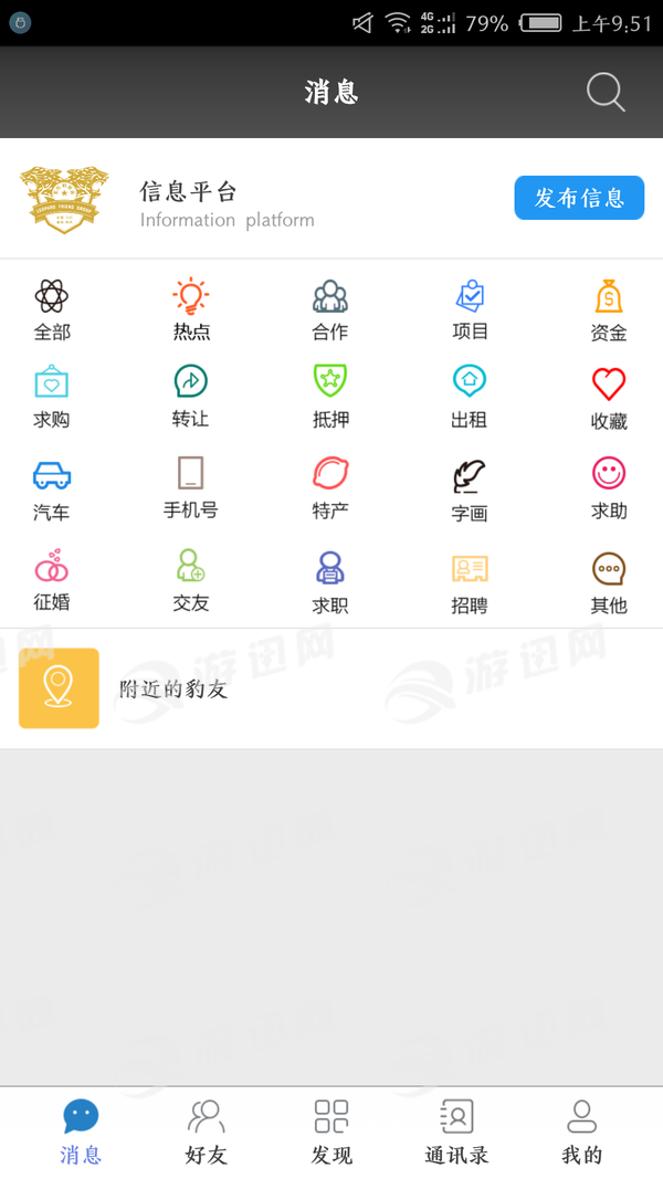 豹友通讯录,相当不错的即时通讯软件,里面服务相当全面,用户只需一点即可获取到自己想要的服务,还有轻松寻找到附近的豹友,操作使用简单,界面清爽简约。