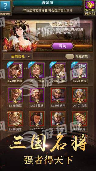1、大多英豪均被列入游戏名将行列之中,统统都可以招募成为你旗下的武将;