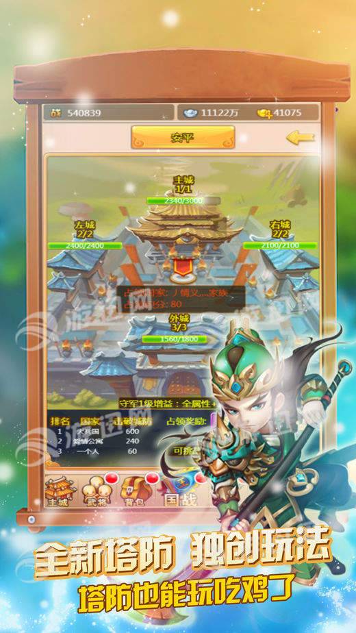 PVE塔防模式,特色300关卡征战副本,每个关卡都是一个拼实力、拼智力的角逐,玩家需将培养好的武将,以最佳的方式安排出战,搭配每个武将的特色技能,合理利用征战中附加的技能属性,权谋策略,斗智斗勇!