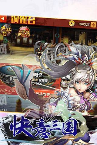 快意三国是一款非常考验玩家操作的三国类RPG手游,三国经典战役,一触即发,可爱的Q版武将让你爱不释手,可玩性极高,支持跨服联机,快带上小伙伴一起来玩!