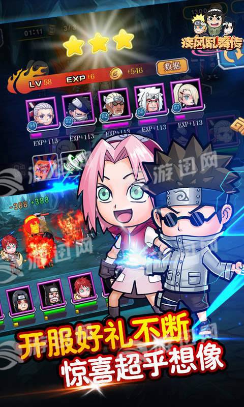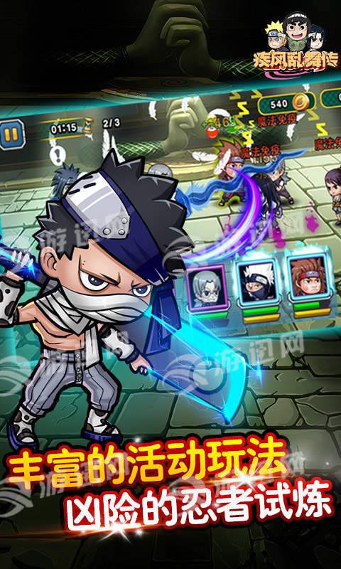 《疾风乱舞传》业内s级制作,40多种人物角色,120种绝无雷同的忍术,激情的手动释放大招,考验智慧的阵型安排