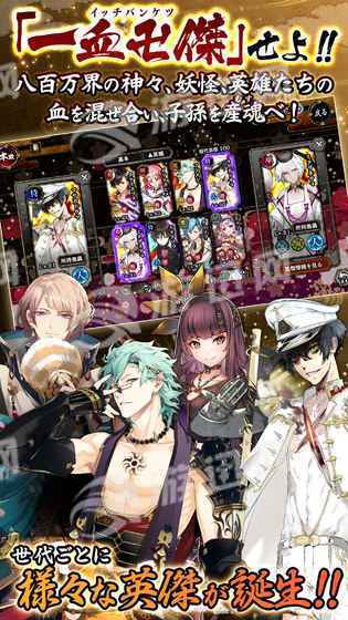 本作的抽卡系统称为鹡鸰台,和传统的卡池设定不同,鹡鸰台通过配对英杰诞生新角色。游戏中玩家扮演独神培养八百万界的人、神、妖等和恶灵展开战斗,在这一过程中,通过执行一个名为一血万杰的秘仪,可以混合不同英杰的血统诞生新的后代。游戏中一共有人、神、妖三大种族,不同种族之间可以互相配对繁衍子孙。