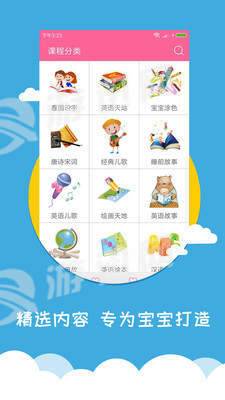 宝宝爱早教是款小巧实用的幼儿教育学习软件,专为儿童打造,课程分类比较全,从看图识字、英语到经典儿歌全都有,随时随地在线学习更多知识。