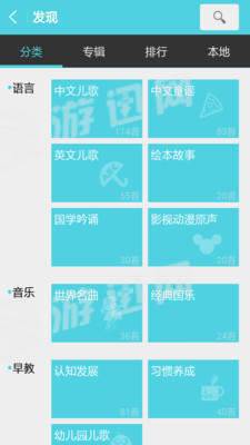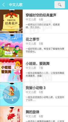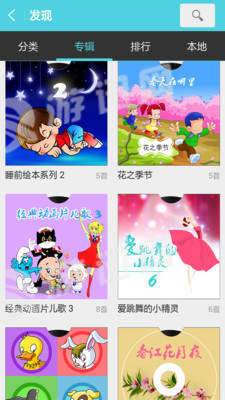 专辑分类内容覆盖众多:经典儿歌,中文儿歌,英文儿歌,国学吟诵,大师名曲等全方位培养宝宝的语言,习惯,思维等综合能力