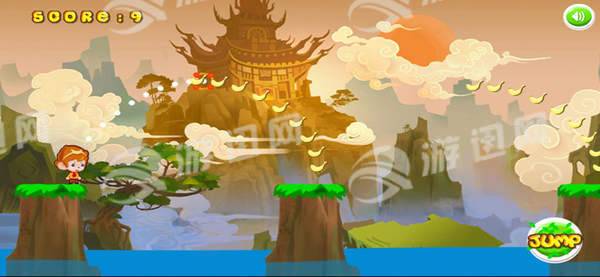 非常经典的西游记题材,创新独特的休闲闯关玩法,你可以控制萌萌哒的孙大圣在关卡中不断跳跃,为了吃到香蕉你需要使出浑身解数,随着游戏的进行,你的每一个跳跃之前都需要在思考一下,这样子成就率会比较高。