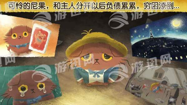 1、游戏的开始,这只叫尼果的猫负债累累、穷困潦倒,但它还有一技之长——画画;