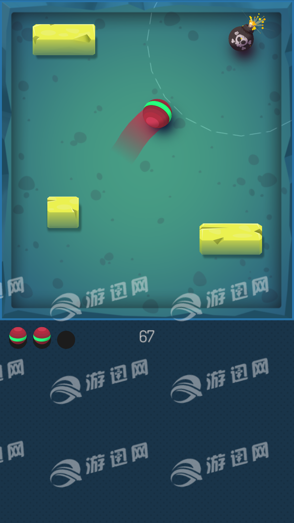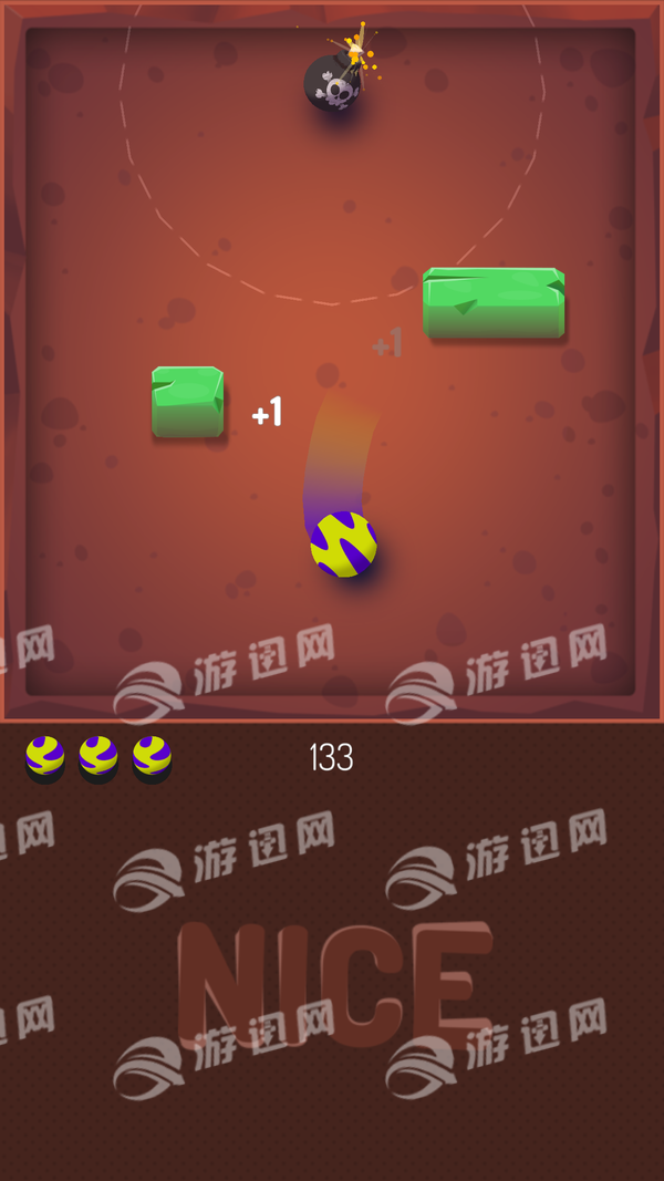 游戏的玩法十分的有趣,操作也是十分的简单,玩家只需要按住屏幕,控制弹珠躲避各种方块障碍物,击中方块围着的炸弹,引爆炸弹,消除掉方块。