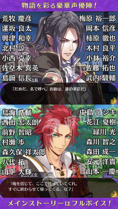 战刻夜想曲b站版是一款由日本idea Factory联合bilibili游戏发布的日本战国穿越题材的女性向战斗冒险游戏!你将有机会与历史上知名的武将邂逅,吸血鬼版的织田信长,狼人版的伊达政宗,你都可以与他们相遇哦!