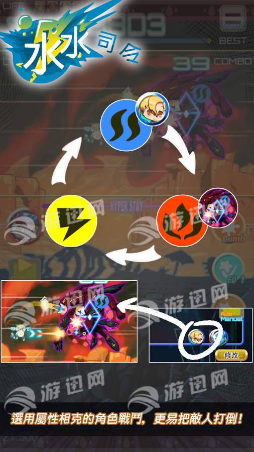 游戏中的敌人及角色设置 3 种属性相克系统;