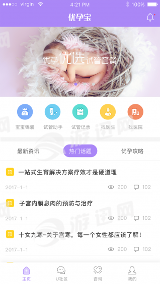 优孕宝app是一款专为想要怀孕的家庭准备的生活服务类软件,这里为广大女性朋友提供试管技术,最专业的试管技术帮助广大女性成功怀孕,还有更多备孕怀孕相关知识等着你哦,需要的小伙伴快来下载吧~