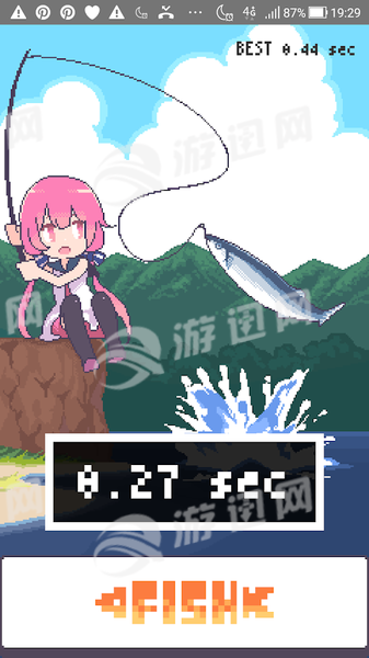 操纵dotpict娘钓鱼,鱼竿晃动就点击屏幕吧!