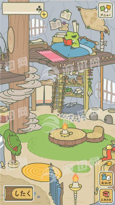 呱的房间おうち可以做的事情有给呱准备行李したく、点击有门帘的小门うらべや查看图鉴ずかん和相册アルバム。