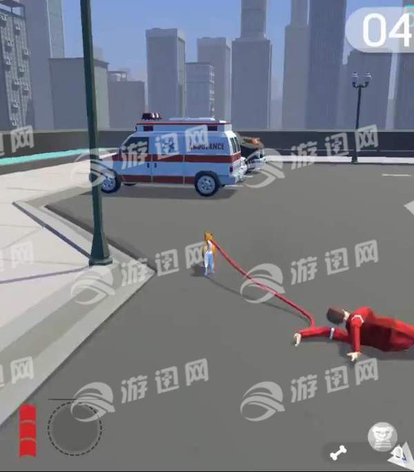 在游戏中看到的就是狗身上套着绳子拖着人在城市街道上跑,随机选择目标,将人当做武器甩出去完成攻击,