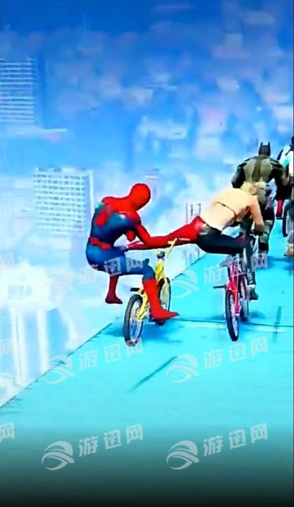1、挑选熟悉的漫威英雄当车手,蜘蛛侠、绿巨人骑自行车,画面感非常搞笑。