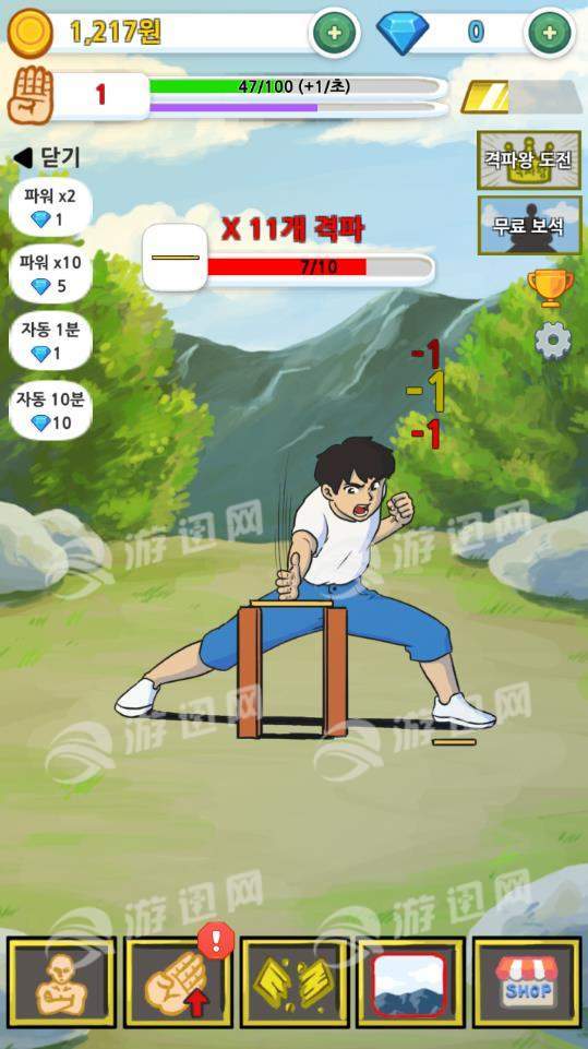2、我们每劈碎一个砖块都会获得相应的奖励,我们可以用这些奖励去升级我们自身的体能,这样手掌的力量会更大;