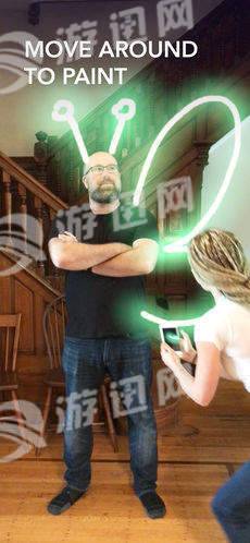 在现实世界中用3D光作画!使用LightSpace对朋友画的翅膀,在你的客厅使烟花棒,写情书,画脸和香蕉。