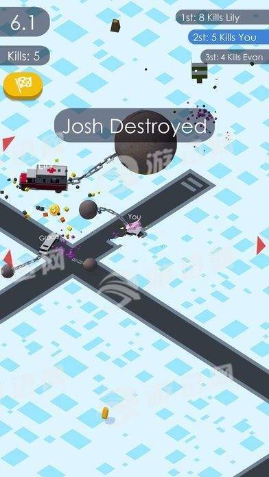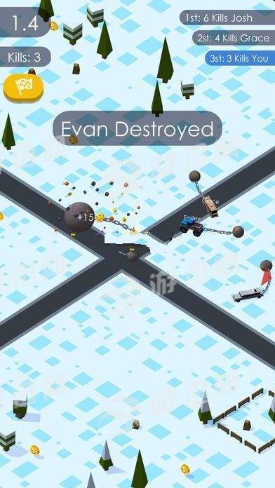 Crash Drivers带你体验飞一般的冲撞玩法!游戏采用了核心的物理引擎支持,延续了经典休闲竞技IO游戏玩法模式,在游戏之中玩家可以控制属于自己的车辆,你需要来拖动车辆后面的巨大铁球来摧毁各种建筑物和其他车辆,不断摧毁这座城市之中的任何物体,取海量的金币和积分奖励,同时还可以增大铁球的体积,称霸这片地图!