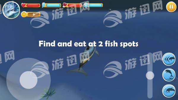 体验真实海豚模拟玩法,捕获不同的鱼类,从中积攒能量,提升自我等级。