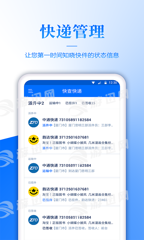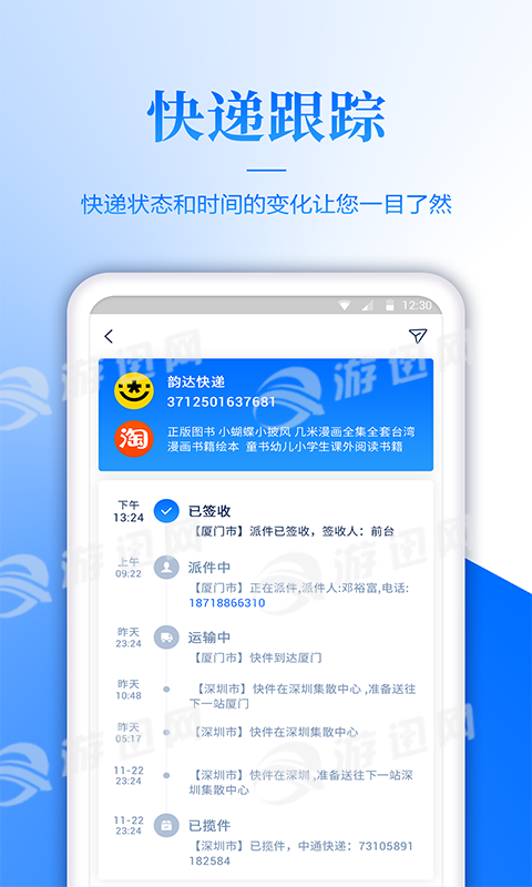 5、智能快递状态实时监控,主动推送取件、派件、签收、疑难等多类型的状态通知、防打扰等贴心功能;