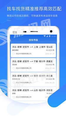 找车找货精准推荐高效匹配,物流公司在线注册后,可快速发布承运找车信息
