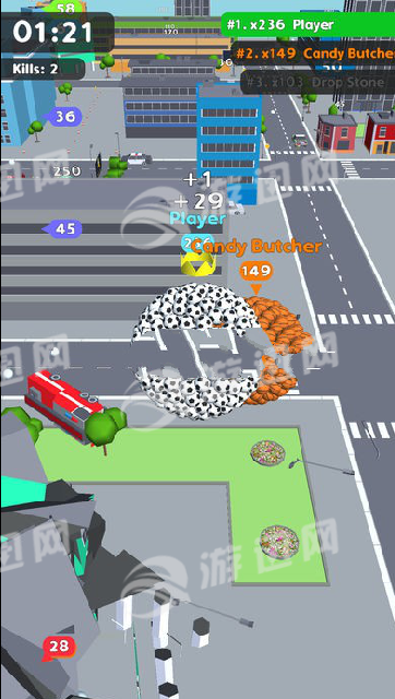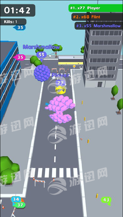 这款游戏拥有极致简约的画面风格,最重要的是玩法有趣,在一个城市中,多个玩家共同竞技,在追逐或是逃跑的过程中体验欢乐无穷的对决,控制你的小球,去肆意的碾压建筑物吧,碾压行走的人类,行驶着的车辆,还有各种建筑物,你将成为这个城市的巨无霸!
