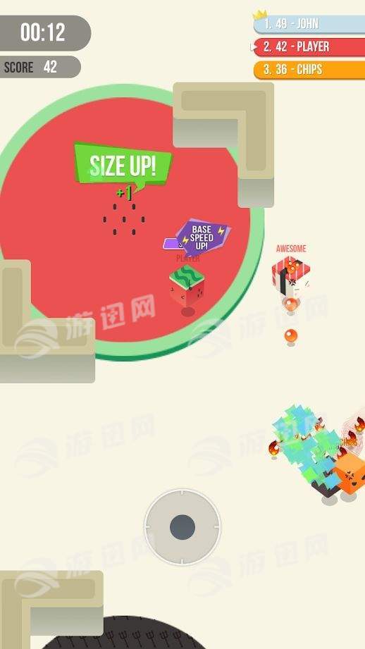 四处游走收集散落在外面的方块,延长自己的尾巴