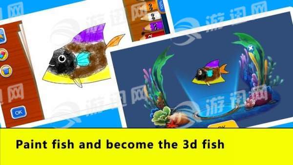 将2D涂画的小鱼变成3D小鱼,不断努力扩大你的水族箱,给小鱼儿们装饰美丽的水族箱!