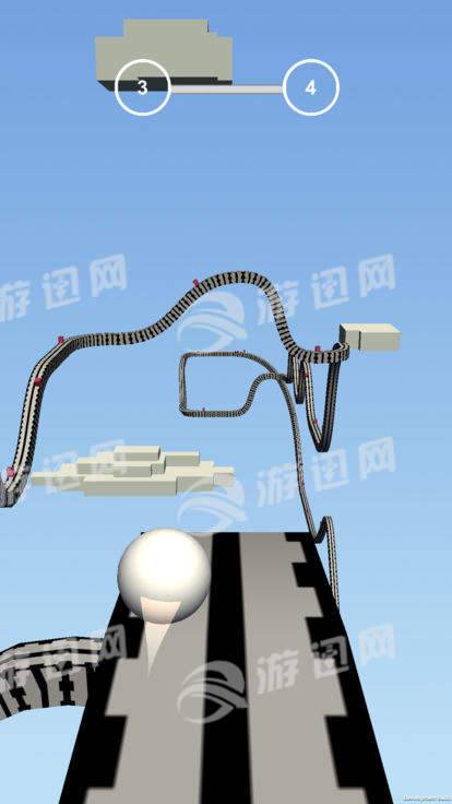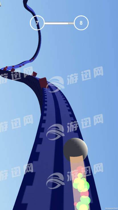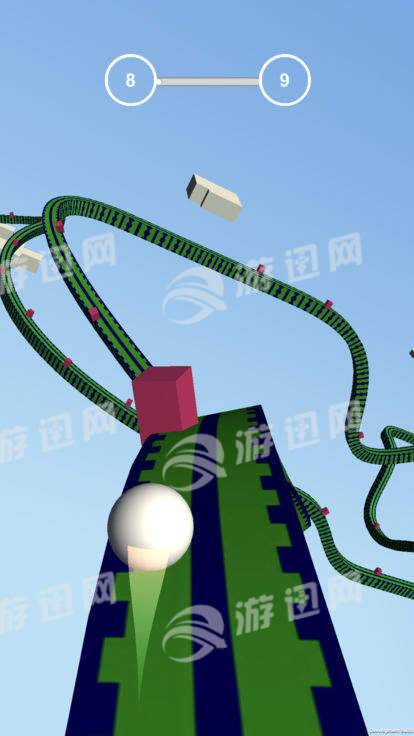 2、隧道在天空中蜿蜒曲折,看一延伸到你视觉看不到的地方,而快速前进的球球只能完全沿着轨道的方向运动,逃离轨道就会陷入万劫不复的深渊。