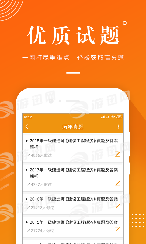 建工考证题库是一款专为建造师用户提供的免费试题做题APP,丰富的课程资源,精华考点,名师精讲课堂视频,名师1对1教学,考点学习配合真题练习,以练习巩固知识点,有效提升对考点记忆力!