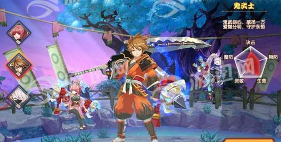 1、日式游戏风格,隐忍者,阴阳师,鬼武士角色可以选择。