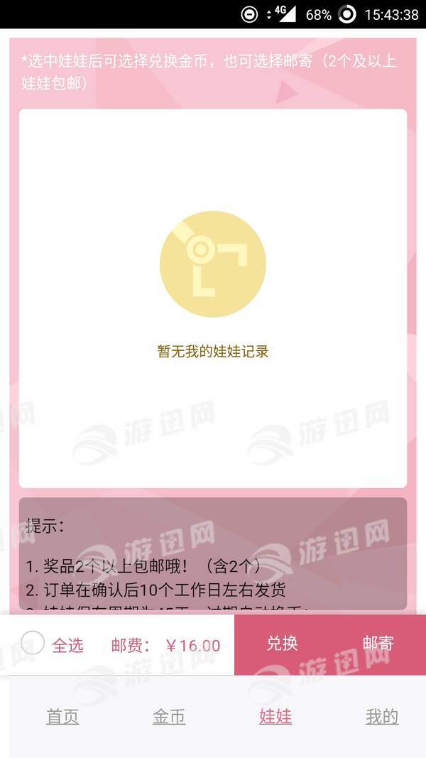 点击娃娃,可以选择兑换或者邮寄