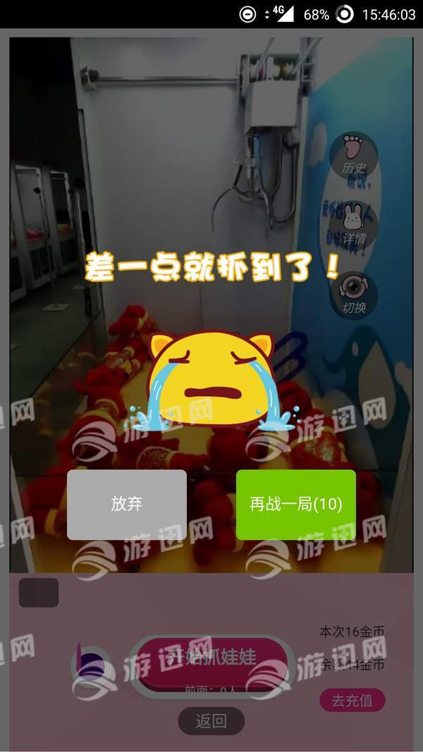 如果没有抓到娃娃,会提示失败