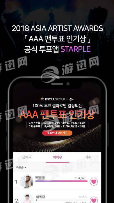starple应用是一款专为韩国明星刷屏投票的软件!想要参与一年一度的韩国电视节投票吗?想要为你心仪的偶像投出宝贵的一票吗?那就快来下载starple应用参与活动吧!