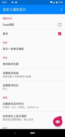 自定义通知显示是款通知栏小工具,不用再被各种应用的推送纠缠着了,而且是可以定制你的悬浮通知的,支持的素材以及选择比较的多,都是免费的,还可以选择通知的样式以及让其显示在屏幕的任何地方,便捷且好用。