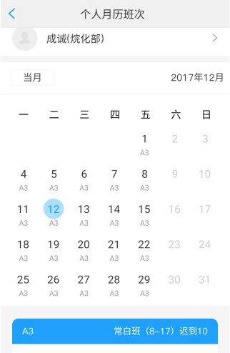 员工信息:支持查看员工信息。班制月历查询:在线查看员工月历班制。