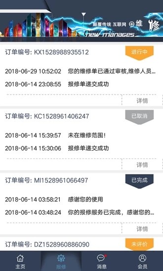 企业人员发布维修信息:在保修期内,企业人员可以发布需要维修的项目订单,并在订单详情内实时跟踪查看维修动态。