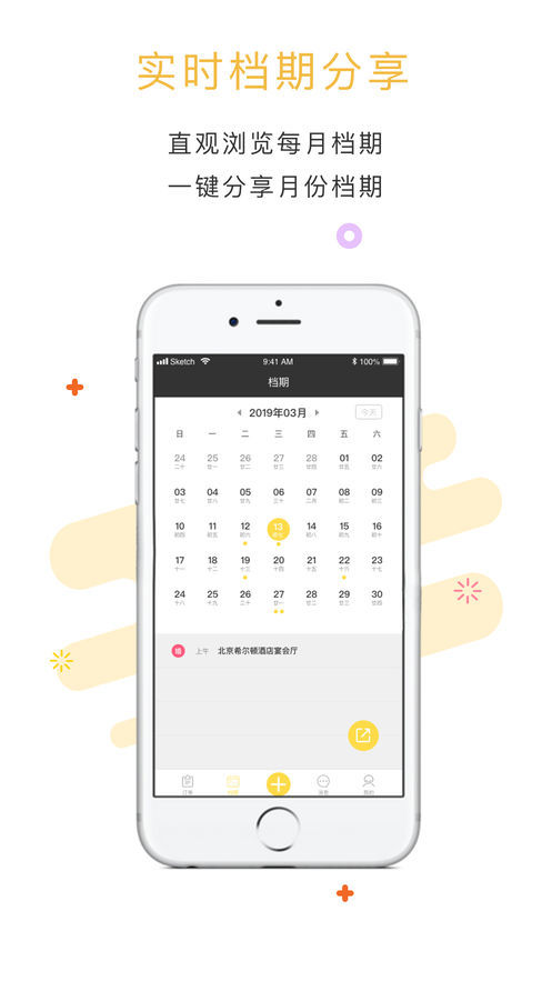 档期分享:直观浏览每月档期;一键分享月份档期。