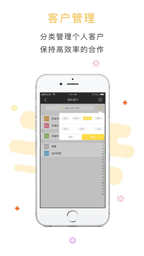 客户管理:分类管理个人客户;保持高效率的合作。