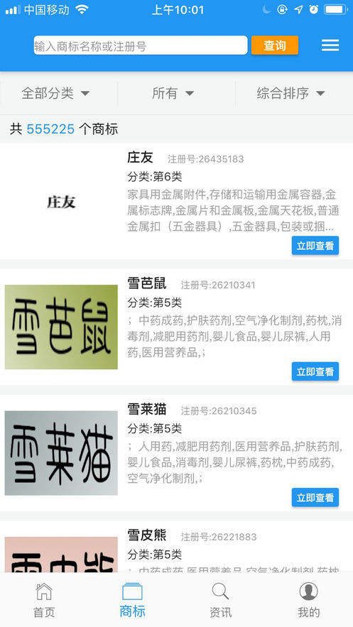 【商标查询】实时同步商标局2300万商标信息。更新全面及时,藏在你口袋里的海量商标库。