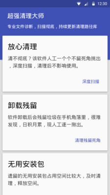 3、深度清理:清理软件运行时产生在SD卡上的垃圾文件。