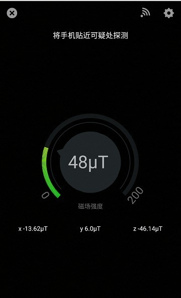 磁场扫描--根据摄像头本身带有磁场的特性,通过手机内置的磁场传感器来检测附近磁场强度,以此判断是否存在隐藏的摄像头。