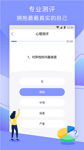 除了AI自动分析外,你还可以选择专业心理测评,判断自己是否出现了抑郁、焦虑、人际关系敏感等情况。