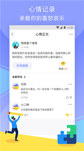 来趣鸭,随手记录自己的心情变化,不用测试,AI便会自动帮你分析以上问题,看看自己的抑郁、焦虑、人际关系敏感程度在人群中到底处于哪个等 级,还能给你相应的建议。