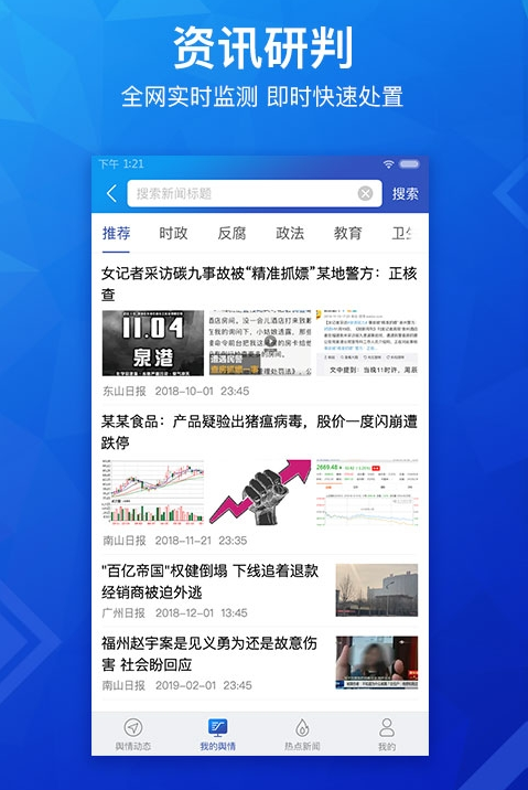 卫擎舆情为你配备一支专业的舆情监测研判队伍(1—10人),运用大数据分析与人工监测相结合的方式,为您提供7*24不间断网络舆情监测服务,即 时为您抓取重要舆情信息!