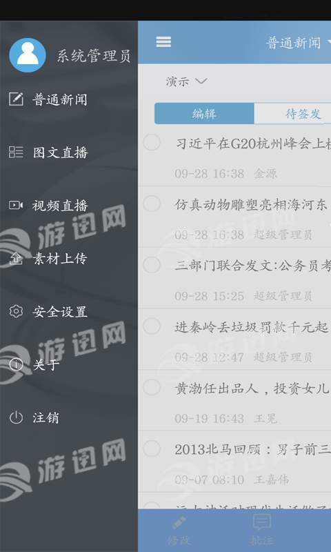 如采、编、发新闻、录入图文直播访谈,视频直播,管理回传图片视频素材等。